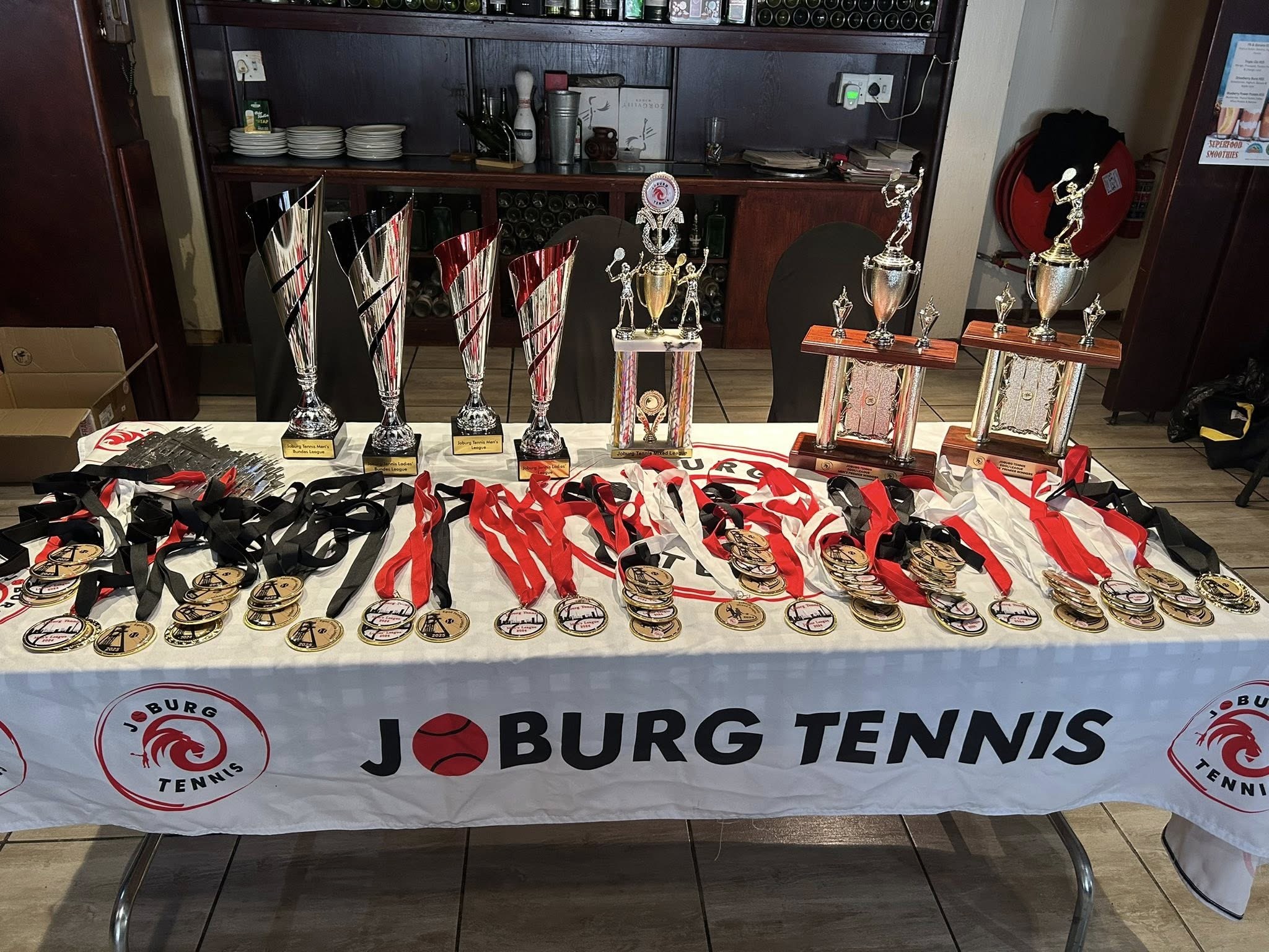 Joburg Tennis held a club council meeting on the 12th of April. These meetings keep clubs in the loop with what is happening in the district and also allow the clubs a chance to engage with the committee and share ideas. It was also decided to use this meeting as an opportunity to hand out the medals and floating trophies to the clubs who had won their leagues. Each club also received a medal hanger to put up in their club house to display their medals. Well done to all teams who have emerged victorious.